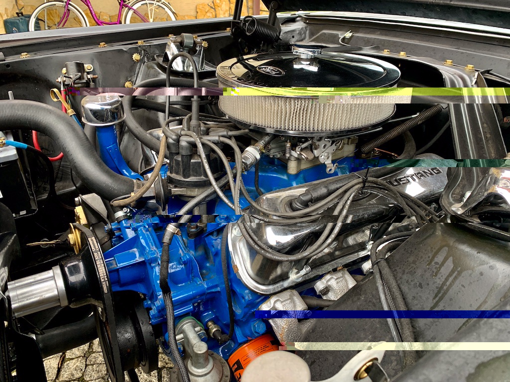 Silnik wraz z komorą silnika był gruntownie wyczyszczony i na nowo pomalowany odpowiednio na niebiesko i czarny mat. Silnik ma nowe chromowanie dekle zaworów pasujące do filtra powietrza z napisem „Ford Mustang” uszczelki i osprzęt jest również nowy.