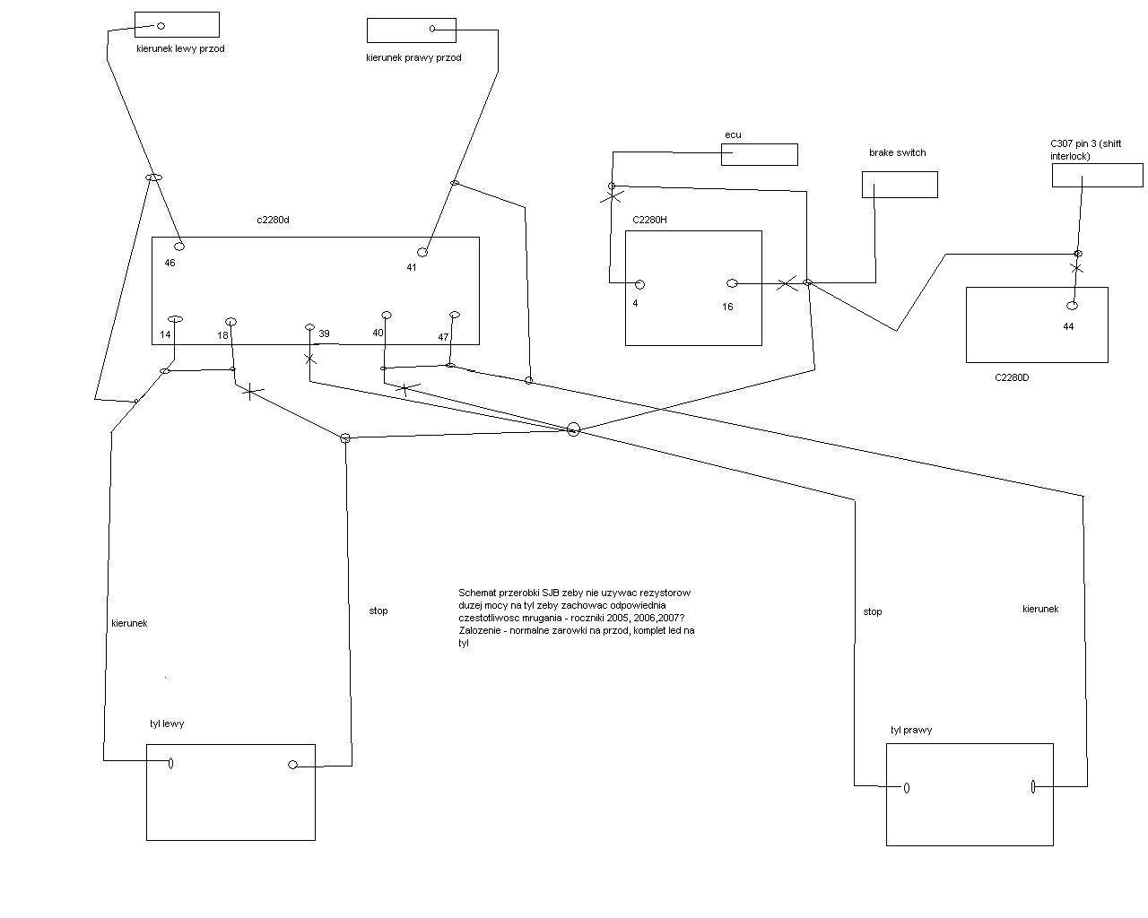 tam z tym SJB jest generalnie tak ze na jednym pinie od tylniej lampy jest ciagle sygnal, nawet przy wylaczonym silniku, stacyjce itd, a na drugim pinie ( od przedniego kierunku ) nei ma w oogle sygnały ( tzn niby jest jak sprawdzamy miernikiem raz 9v, ale nei da sie z tego odpalic ani zarówki, ani diody, ani nic ) generalnie mimo ze SJB zwalone to fajnie ze działa