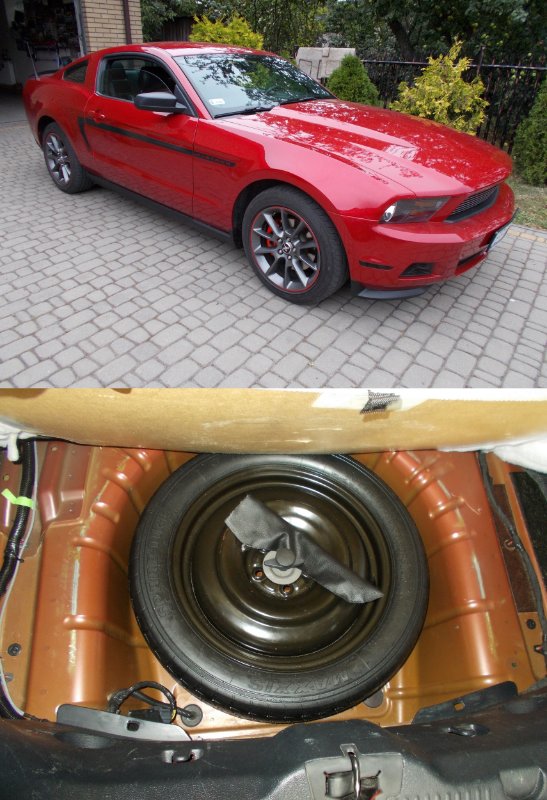 dywan bagażnika z pilśnią w tych Mustangach to dramat- śruba przebija pilśnię, całość lubi się rozklejać i zapadać... ja w którymś ze swoich nałożyłem na śrubę kółko z fotela czy jakiegoś innego mebla- większa powierzchnia lepiej podpiera i na szybko to tyle- trzeba z tym żyć,- nie ma się co za dużo przejmować....