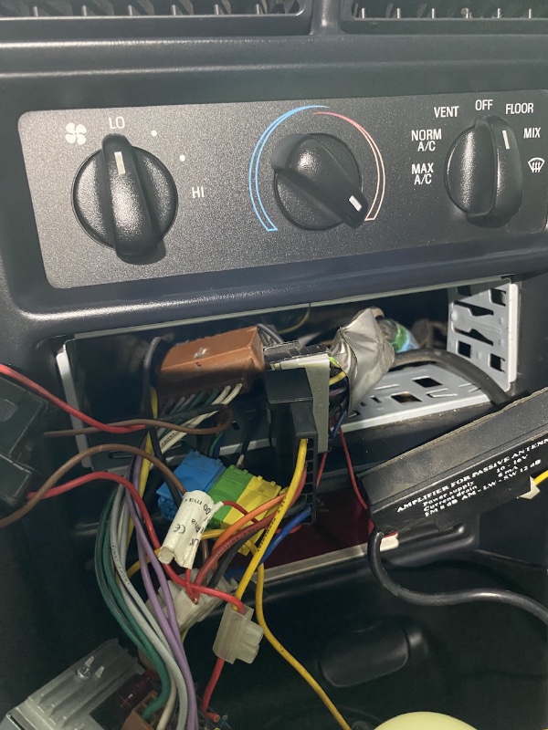 Część opisu kabli masz na wzmacniaczu fabrycznym jeśli nikt go nie wywalił. Za centralną konsolą przykręcony do tunelu