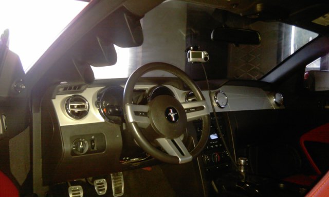 Nie chciałem wiercić otworów w desce, tak jat jest to zrobione w GT500, bo mój konik to nie shelby, więc zdecydowałem się na wskaźniki na słupku. Widoczność zegarów na słupku jest bardzo dobra, bo są na wysokości wzroku. W GT500 ładniej wyglądają zegary na desce, ale nie są tak dobrze widoczne z miejsca kierowcy.