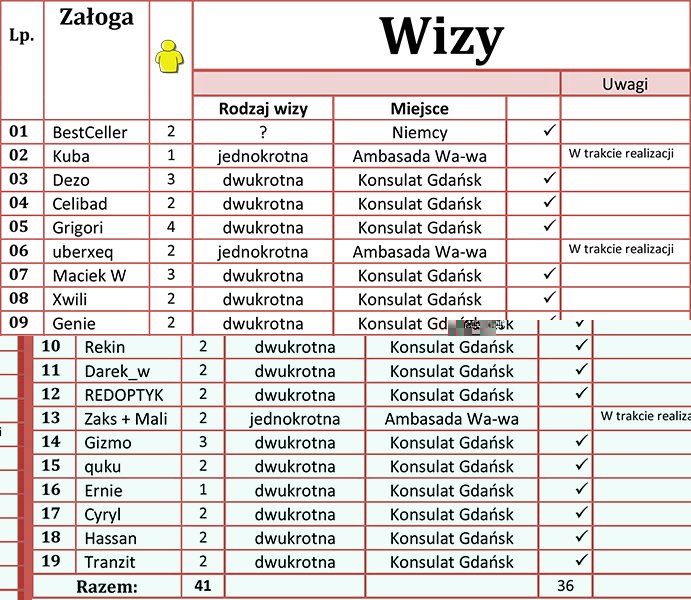 Kuba, Mali, Zaks, Uberxeq - są w trakcie załatwiania wiz w Warszawie. Prawdopodobnie na 14 czerwca będą juz mieli.