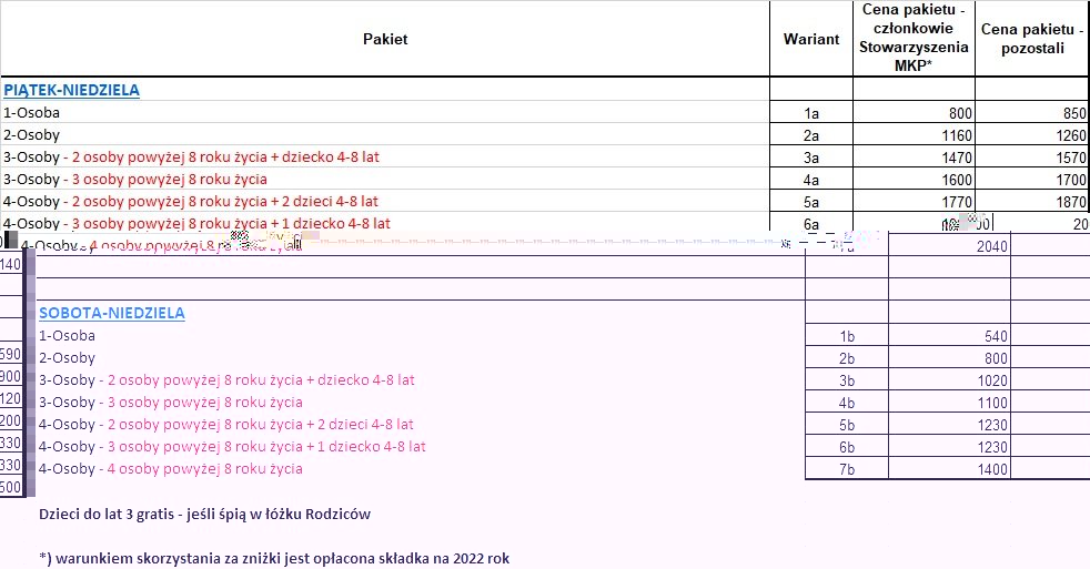 Poniżej pozostawiamy informację o wariantach noclegowych.