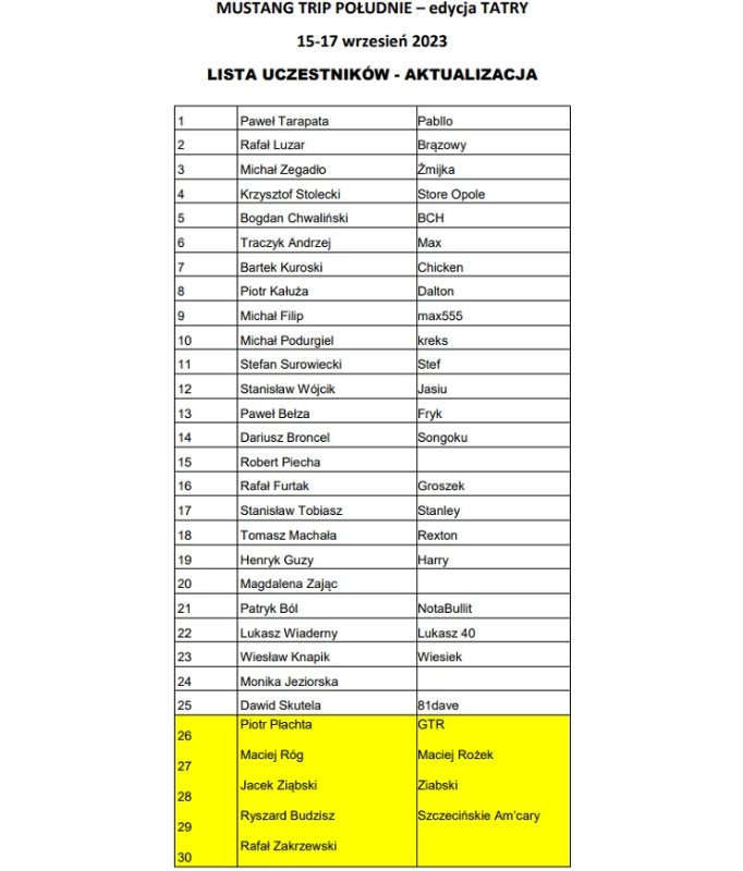 Re: Mustang Trip Południe - wokół TATR 15-17.09.2023