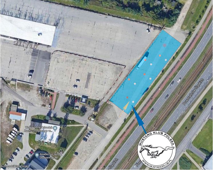 Opanujemy teren po prawej stronie przed bramą wjazdową na teren Autodromu Bemowo - fragment płyty lotniska o wymiarach 100 m x 25 m. Nasz plac pomieści własny tor do jazdy sprawnościowej (slalom, beczka na końcu, powrót), zaplecze z ciepłymi napojami i czymś na ząb oraz parking - wystawę aut. Będziemy wozić chętnych, którzy zasilą puszkę WOŚP. Tor będzie dość wolny - chodzi o zarzucanie tyłem, a nie prędkość - musi być bezpiecznie. Co pewien czas zrobimy przerwy - auta będą stygły z boku.