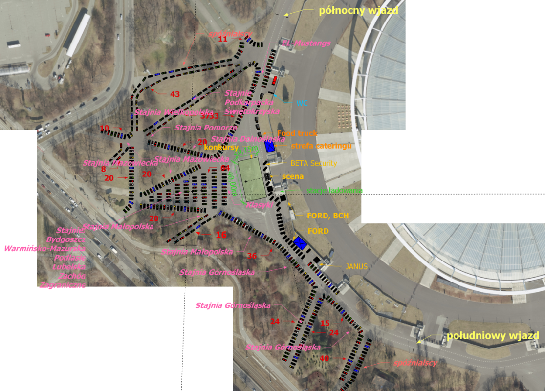 Na teren zlotu - Plac Mistrzów przed Stadionem Śląskim będzie można wjechać przez 2 bramki wjazdowe: