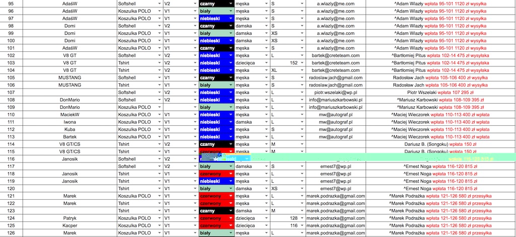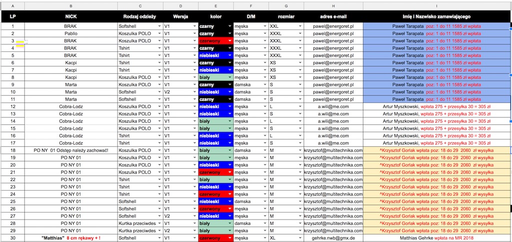 Aktualna lista zamówień poniżej, ewentualne błędy nie będą podstawą do reklamację prosiłem pytałem i upominałem!