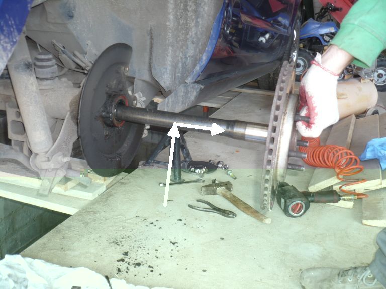 5. Wpychamy półoś o ok. 1 cm żeby wyjąć półksiężyce zabezpieczające półoś przed wysunięciem.