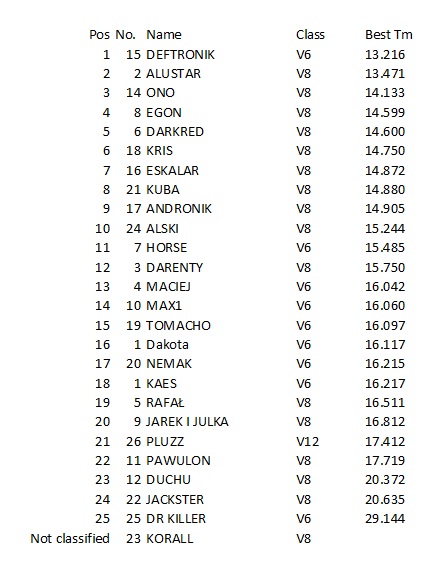 Tak źle nie jest, myślę ok 17 bym zrobił tylko coś na starcie auto minimalnie mi drgnęło i na aparaturze wyszedł falstart wie cofałem auto by jeszcze raz ruszyć a gościu z obsługi mnie spławił że mam jechać wiec czas... a potem oczywiście aparatura się popsuła wiec nie wiem za co wzięli tyle kasy...