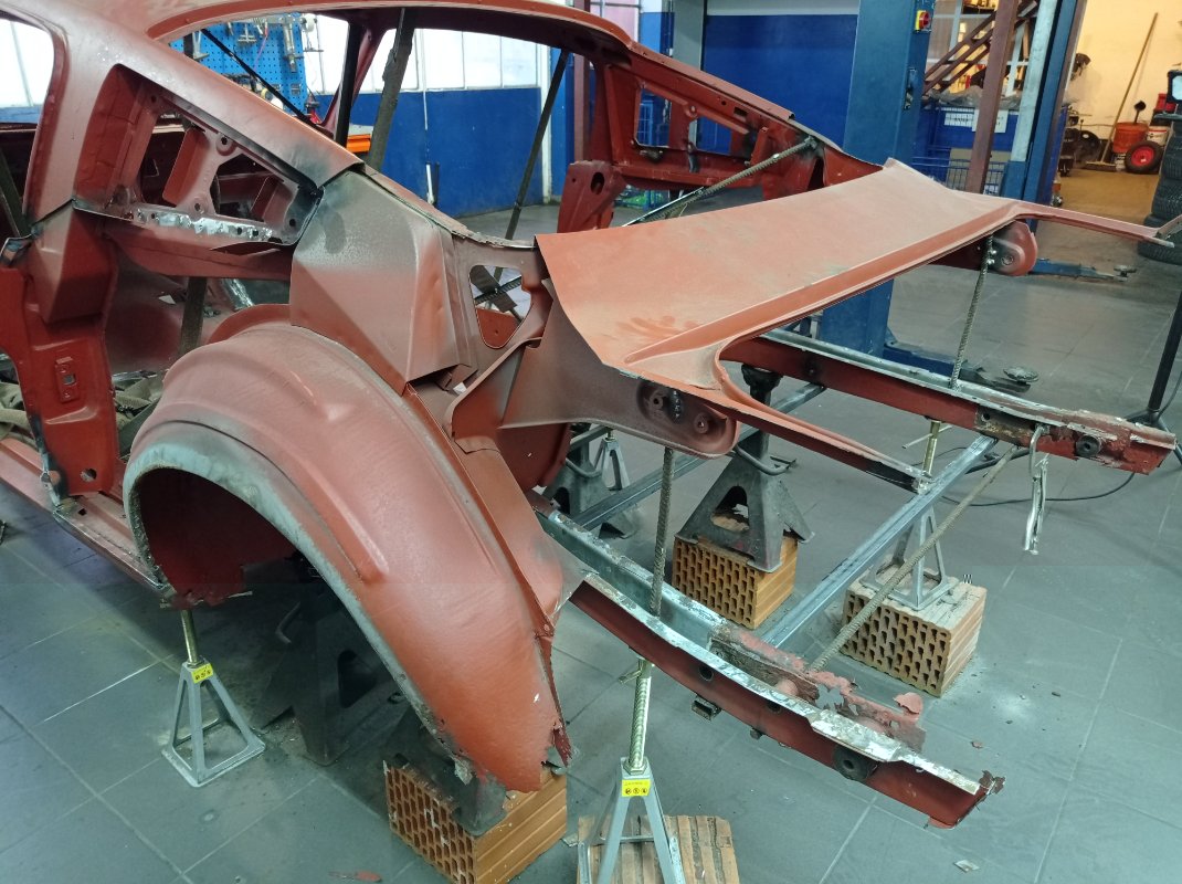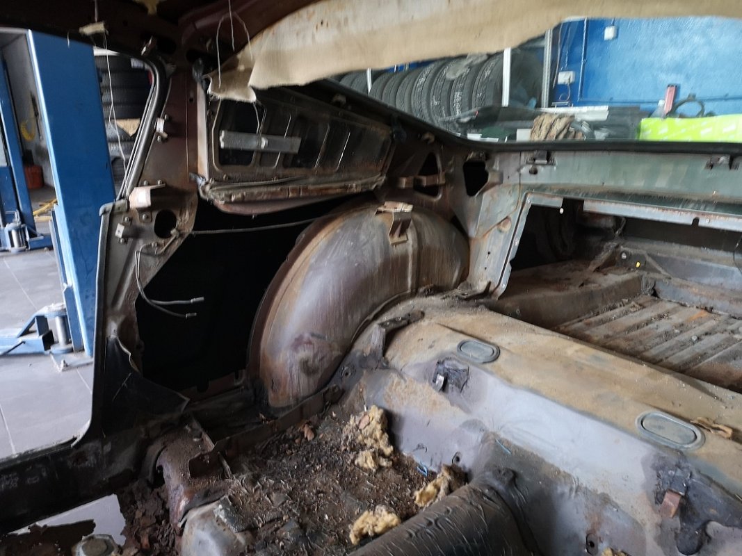 Wczoraj rozbieraliśmy. Myślałem, że będzie większa tragedia. Na codzień nie zajmuję się klasykami, ale wydaje mi się, że jest nawet przyzwoicie. Auto nie było za dużo robione w USA. Tylny prawy błotnik, próba przespawania + podszybie, próba przespawania, jakaś wstawka w wewnętrznym nadkolu. Nie wiem jak podszybie od wewnątrz. Ten projekt jest jako dodatek dla mnie, także będzie robiony w chwilach wolnych:)