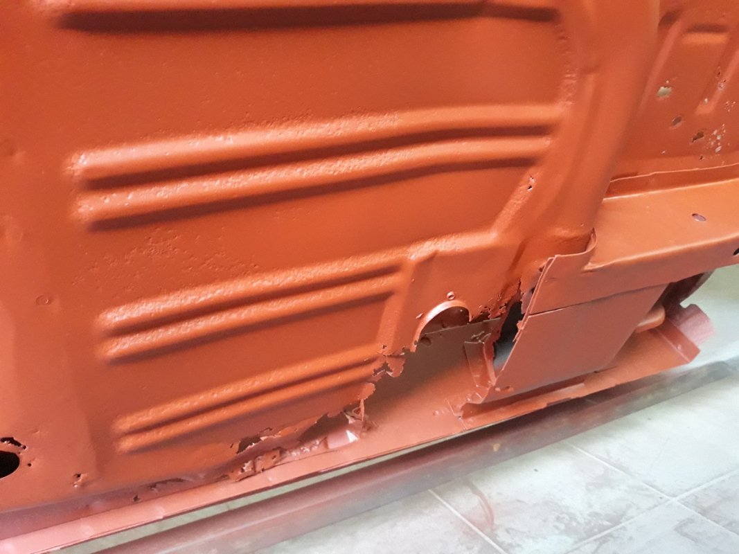 Oczywiście po piaskowaniu wyjdzie stan faktyczny, ale dostał już trochę młotków i np. progi rewelacja, komora silnika w świetnym stanie.