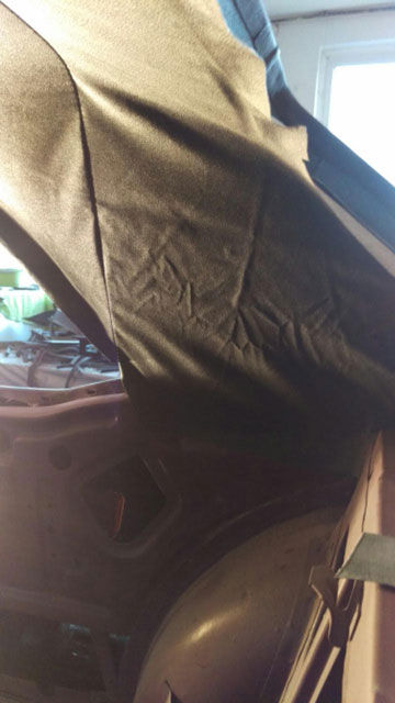 Tak więc dziś był dzień pełen wrażeń... Przyjeżdżam do warsztatu, spotykam się z tapicerem i krótko stwierdzam że to tak nie może zostać, a ten że nic się z tym nie da zrobić, bo co najmniej 2 lata przeleżało poskładane, że już ponoć to próbował prasować, etc. dodał również że u niego uszyta podsufitka kosztuje 800zł + 300 założenie (czyli że moja jest miernej jakości, czemu nie zaprzeczam, bo trzeba się z nią trochę namęczyć)... tymczasem na warsztacie znalazłem opalarkę i po 3 min delikatnej pracy odgniecenia zaczęły schodzić... więc się pytam kiedy dokończy robotę, bo jednak się da, na to tapicer że nie ma czasu i chciałby rozliczyć się za winyl, natomiast po rozliczeniu stwierdził że nie ma czasu na dokończenie roboty w najbliższych dniach... Tak więc zacząłem szukać kolejnego tapicera, niestety bezskutecznie, ale w jednym zakładzie udało mi się zaopatrzyć w (jak się później okazało w bardzo dobry) klej, pędzel i postanowiłem sam to skończyć :D Jak się na końcu okazało moja dziewicza robota wyszła lepiej niż "profesjonalisty" spod Sanoka.
