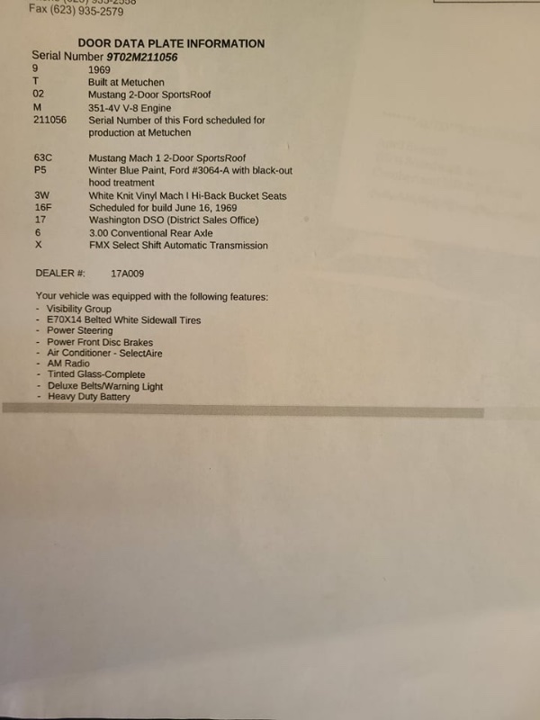 Według Marti Report Mustang wyprodukowany został 16 czewrwca 1969 w bardzo ciekawej kolorystyce.