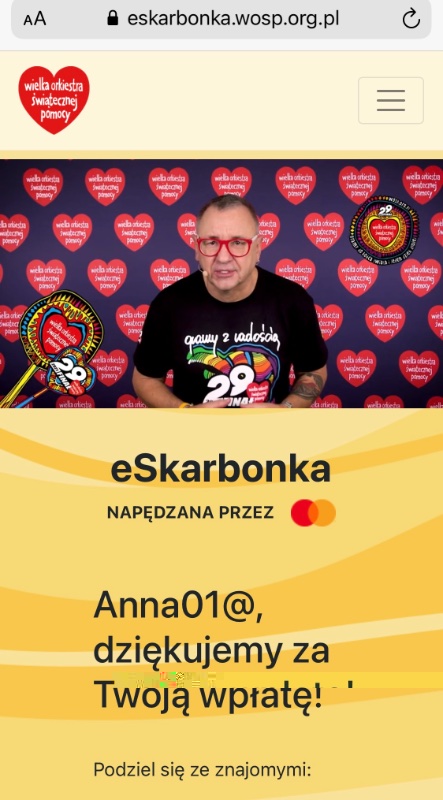 Jeśli chcecie, żeby Jurek Owsiak Wam osobiście podziękował, wystarczy wpłacić ;) Efekt jest super :D