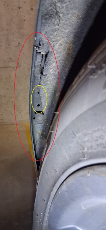 Po obu stronach samochodu w tylnych nadkolach mam dziwne wycięcie/dziure(nadkole nie dochodzi do granicy zderzaka) i zastanawiam się po co to jest (zaznaczone kolorem czerwonym). Może brakuje mi jakiejś zaślepki? Widać tam też dwa otwory (zaznaczone kolorem żółtym). Może to mocowanie na coś takiego: