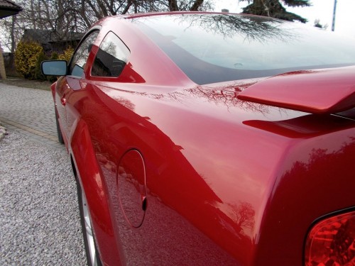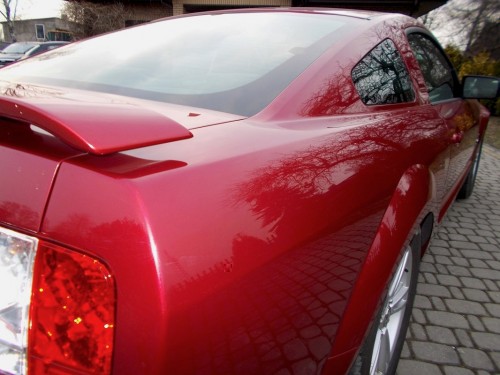 Mustang ma zmodyfikowany układ wydechowy- dźwięk SZOK!!!! sportowe zawieszenia Eibach ( niżej stoi ale nie za twardo)--bez rdzy/szpachli, wszystkie szyby oryginalne- po dokładniejszych oględzinach stwierdzam naprawę lub wyminę tylnego lewego błotnika - ale jest na prawdę OK !!!