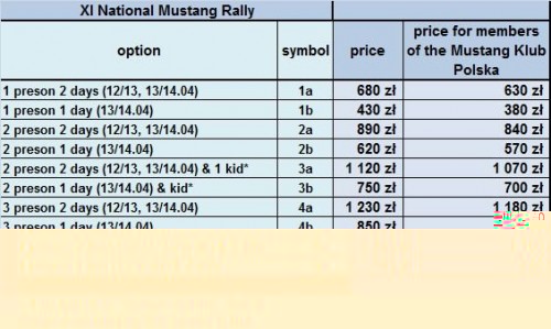 Pytania proszę kierować na mail: zlot@mustangklub.pl