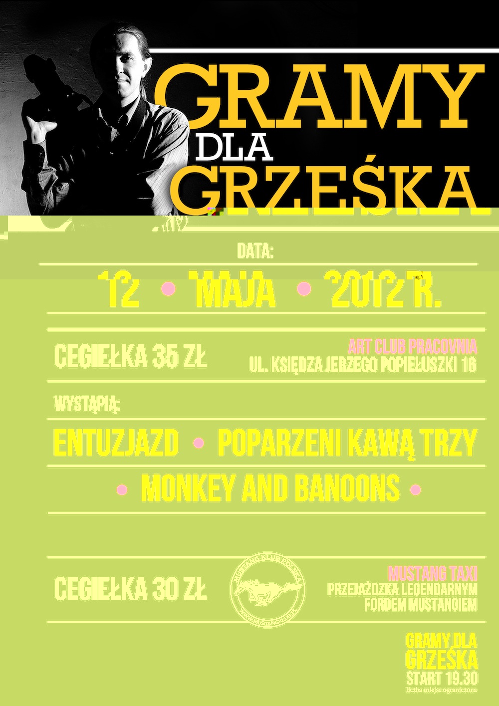 12.05 czyli za tydzień w sobotę w wawie odbędą sie dwa koncerty, gdzie bedą sprzedawane cegiełki dla Grzesia.