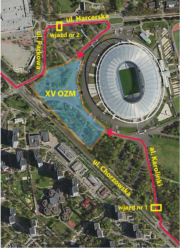 Na teren zlotu - Plac Mistrzów przed Stadionem Śląskim będzie można wjechać przez 2 bramki wjazdowe: