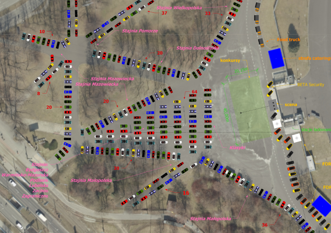 Na bramkach będą obecne osoby, które będą wpuszczały Mustangi i kierowały dalej (dzięki temu nie będzie konieczne pobieranie biletu wjazdowego).