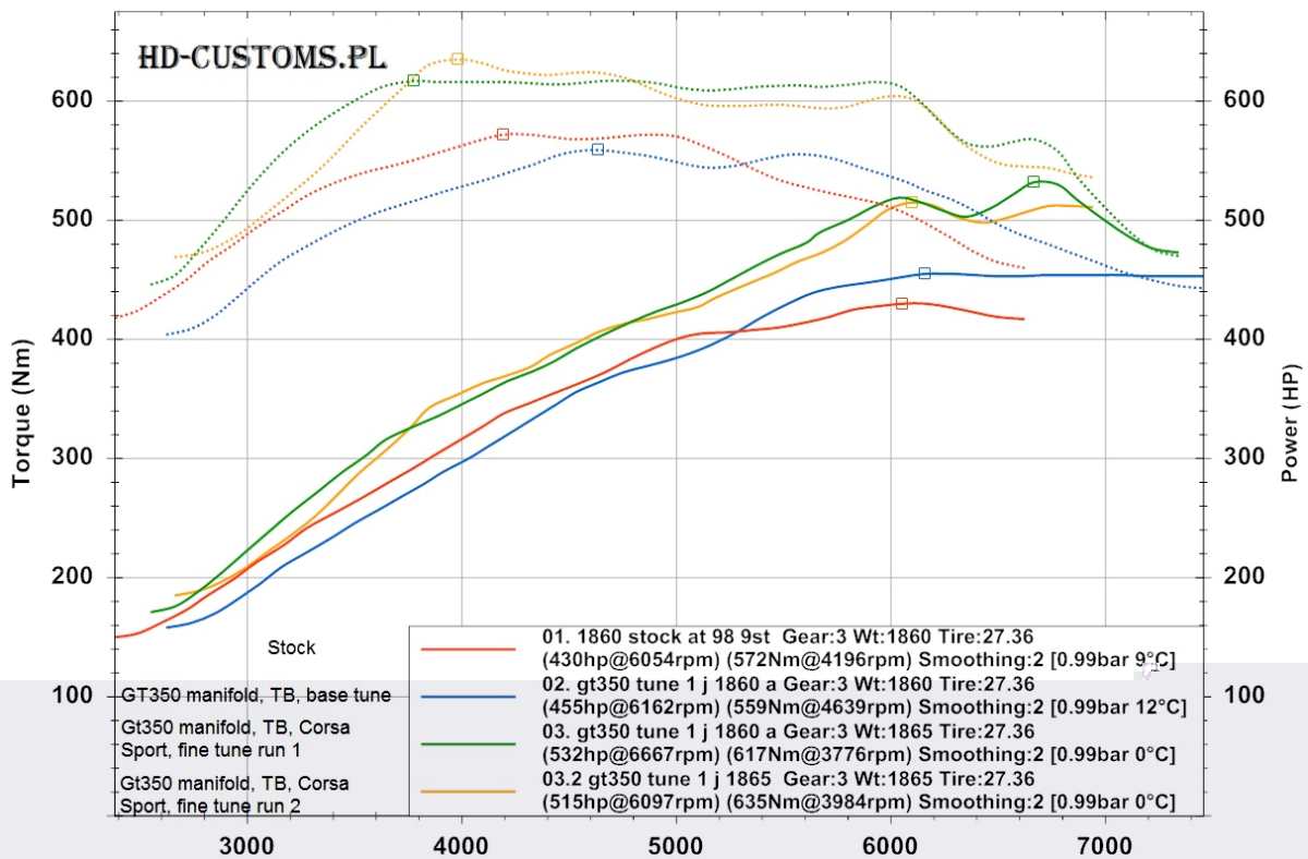 Mustang 2015 z kolektorem dolotowym, CAI, przepustnicą z GT350, Corsa Sport double X-Pipe catback coś koło 520 koni, to jest przyrost....