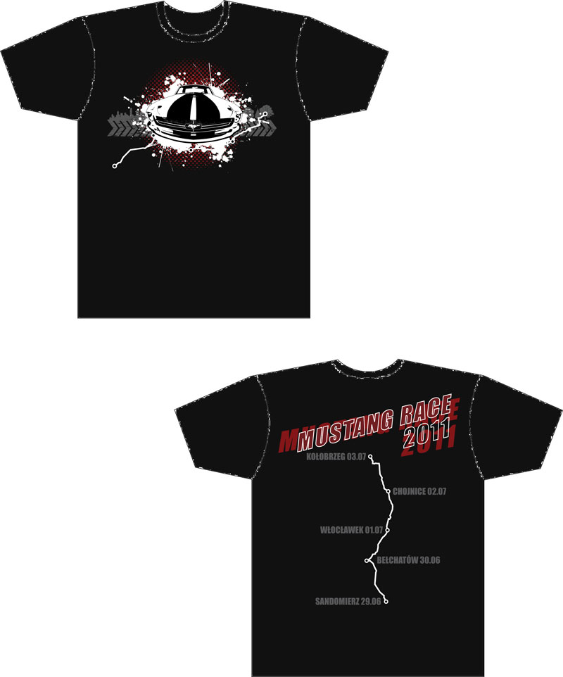 Dla uczestników, z tyłu logo klubu, na dole napis Mustang Race, z przodu to samo, tylko mniejsze - tak, żeby się zmieścilo na piersi.