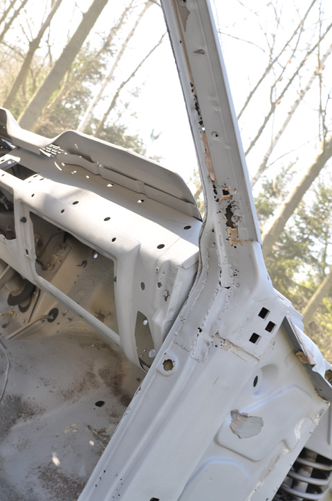 -pojedyncze dziury w podłużnicach przednich i tylnych na tzw. łukach(można kupić wstawki - axle) - więc jeżeli są tam pojedyncze dziury to w nie wiadomo jakim stanie jest ich środek - toteż zrobić spód raz a dobrze i wymienić na nowe