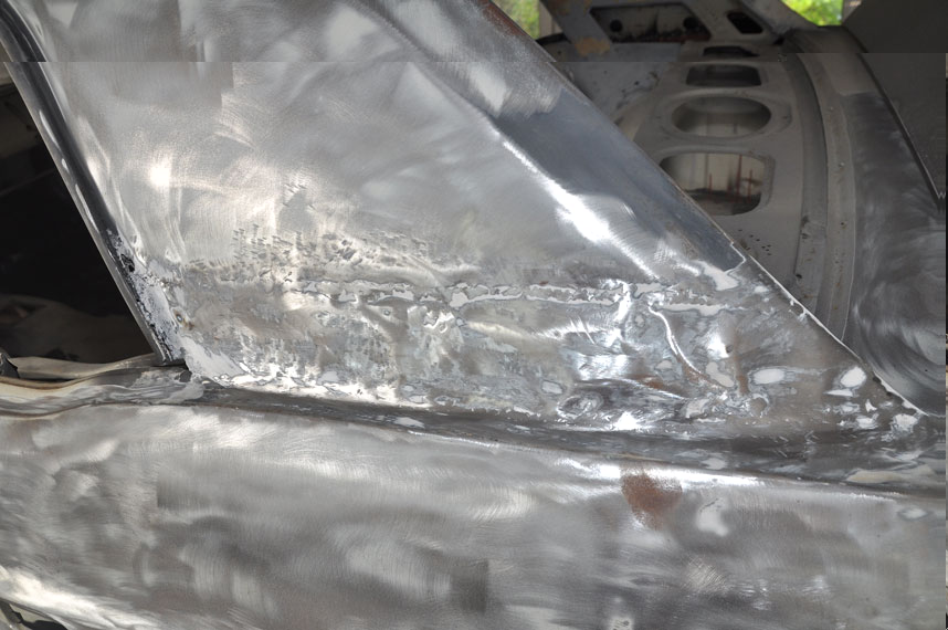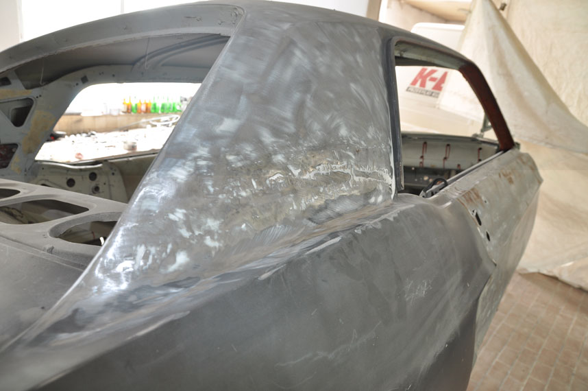 wszystko ponownie zdarte, odsłonięte naprawy przez poprzedniego "fachowca", linie wyprowadzone do linijki, a dolny tylny fragment tylnego błotnika zyskał prawidłowy kształt