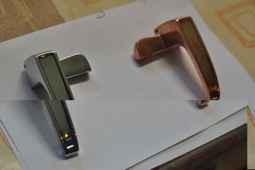 klameczka po lewej skończona i w końcu zrobiona jak trzeba! a po prawej po miedziowaniu (poszła powtórnie do chromowania , gdyż gdzieś przykleił się 1mm paproch, a tutaj dbają o szczegóły :) )
