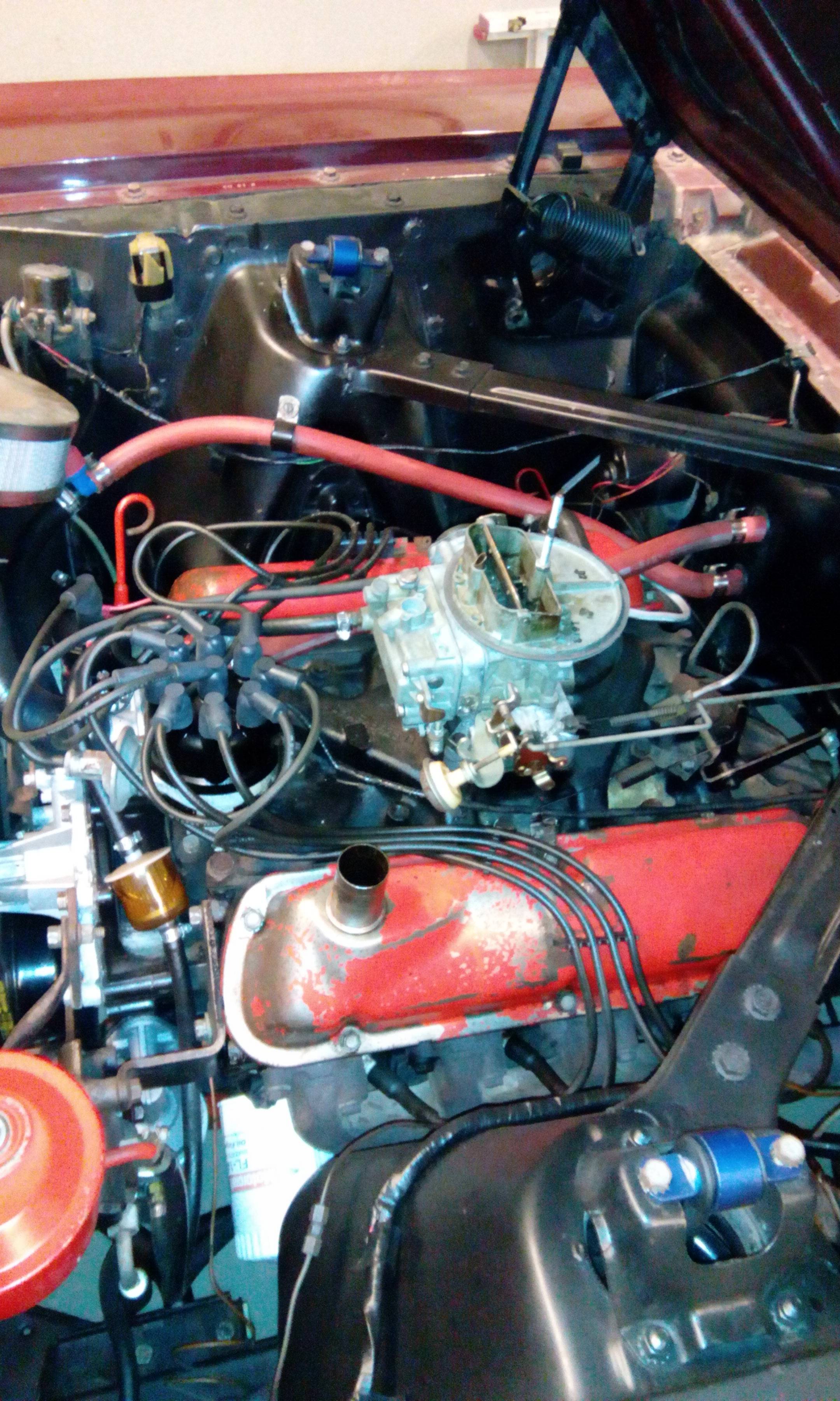 Aktualizacja. Tył obniżony o 1 cal lowering blockiem. Magnumy 500 z BFG 225/60/15 na czterech kołach (235 z tyłu na feldze 8 cali na luzie by weszło). Tyle z pozytywów. No i przegląd bezterminowy dostałem, i papier zabytka, teraz tylko znaleźć czas zarejestrować. A z negatywów.......pfff mały dramat... cieknie prawy cowl went. Niby dlaczego w stanach naprawiali podłogę pasażera? Od dołu zardzewiała? :) No nic, trudno, na spokojnie się tym zajmę. Teraz muszę napęd zrobić i wydech cały wymienić bo jest sito. Myślałem o kolektorze tri-y + flowmaster super 44, a rury custom. Nie wiem kto by to mógł ograrnąć, gdzie nie pytam to słyszę "Panie w przyszłym roku, teraz to ja robotę mam". Znów zdjęcie nie działa, może moderator to ogarnie pls.