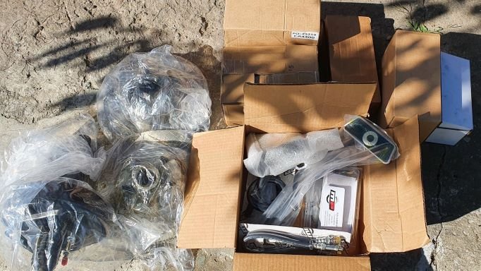 Jeden z zakupów ale jak na razie największy... całe zawieszenie, elementy silnika (uszczelki, czujniki, kable zapłonowe itp) i kilka brakujących chromów