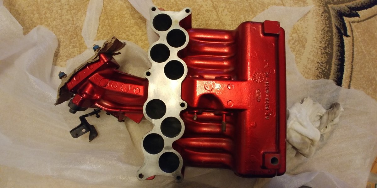 Na początku roku zakupiłem tez gorna część intake GT40 - konkretniej intake który był oferowany przez SVO czyli dzisiejszy odpowiednik Ford Racing. Ten wydajniejszy kolektor byl w cobrze 94-95. Musze Jeszce dokupić lower mainfold (w usa) i pewnie na jesień zabiorę sie za montaż.