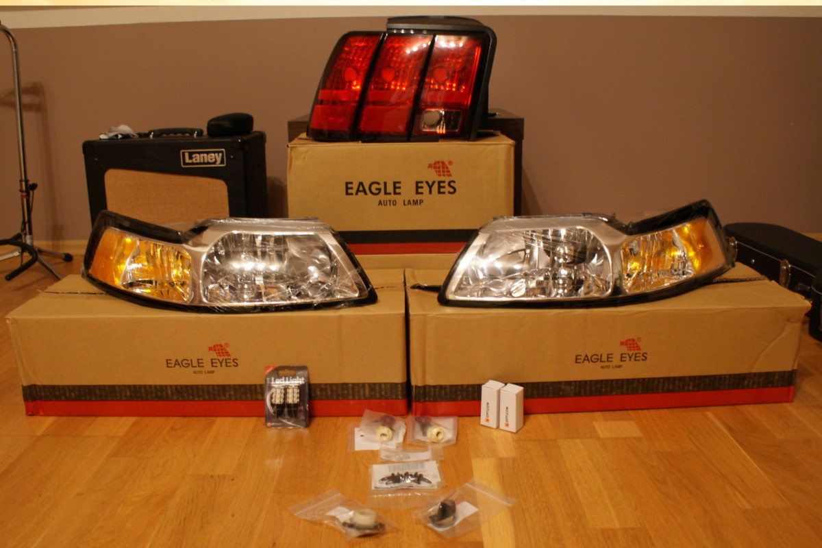 Lampy tył: przede wszystkim one, gdyż obecnie mam z tyłu lampy "lexus-look", "lampy seksu" czy jak kto woli, więc pierwszy mój impuls przy zakupie konika to właśnie wymienić lampy, bo najzwyczajniej w świecie mi się nie podobają. Później jednak doszła do tego nadmierna nieszczelność tych lamp, (ktoś przy nich grzebał, żeby kierunkowskazu nie zasłaniał czerwony klosz) powodująca ciągłe strzelanie jednego z bezpieczników. Wybór nowych lamp? OEM'owe - jedyne słuszne. A tak wyglądają te lexusy - w przyszłym tygodniu wystawiam na sprzedaż za grosze gdyby ktoś chciał: Lampy przód: przy nich również grzebał pierwszy właściciel, którego to zesłali do Europy wraz z jego Mustangiem. Są lekko nieszczelne, ponieważ od boku wwiercone są pozycyjne - oddzielone od kierunków. Ja natomiast chcę powrócić do oryginału - kierunkowskaz wraz z światłami pozycyjnymi. Plus skoro wymieniam tylne, to przednie nie mogą odstawać, a przyznam - są już trochę zmęczone. Wybrałem takie,(odsyłam dwa zdjęcia wyżej) bo najbardziej mi się podobają i oprócz tego - takie były montowane w tym roczniku! Tak wyglądają teraz, na zdjęciu tego zmęczenia nie widać, ale wszystko przecież uargumentowałam wyżej: Oświetlenie tablicy: tu powód oczywisty - pożółkłe i popękane osłonki oraz nadpalone gniazda.