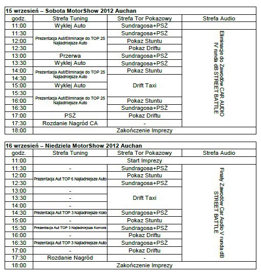 "Impreza odbędzie się w dniach 15-16 wrzesień na terenie Centrum Handlowego Auchan Swadzim k. Poznania w godzinach 11:00-18:00.