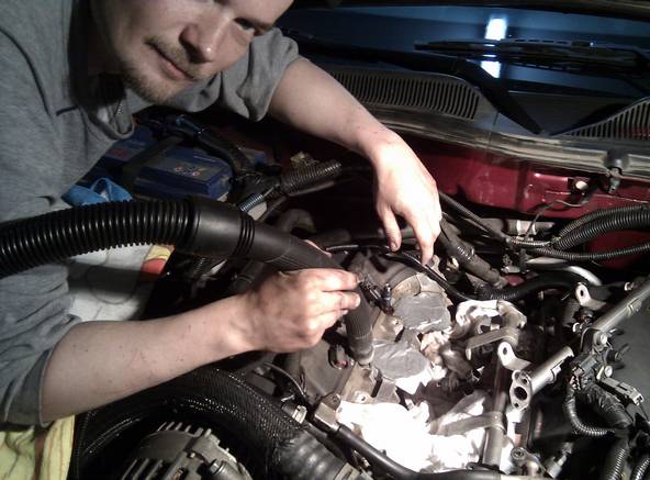 Poza tym okazało się jeszcze że jedna śrubka od czujnika MAF była ukręcona, więc trzeba było ją rozwiercić i nagwintować otwór na nowo.