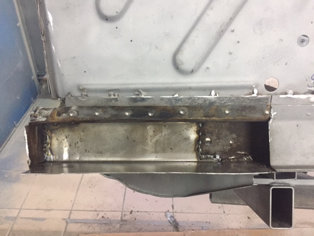 Z podłogi nie zostało za wiele, i doszło parę blach do dokupienia. W trakcie wyszło także,że położenie przednich podłużnic po "Amerykańśkiej" naprawie nie do końca jest poprawne:)