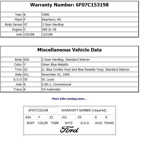 Ex: 1964-1/2, 1965, 1966, 1967, 1968, 1971, 1972, 1973, 1995, 2007