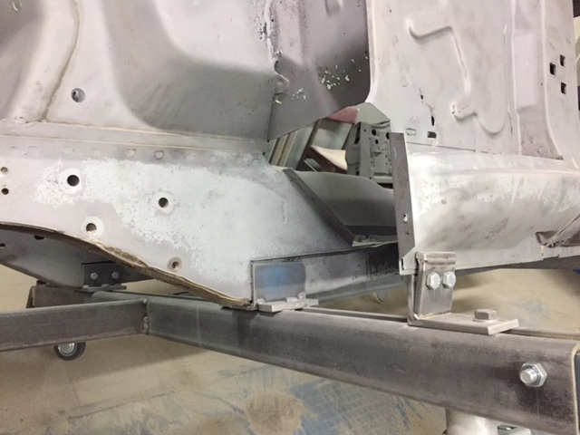 Z podłogi nie zostało za wiele, i doszło parę blach do dokupienia. W trakcie wyszło także,że położenie przednich podłużnic po "Amerykańśkiej" naprawie nie do końca jest poprawne:)