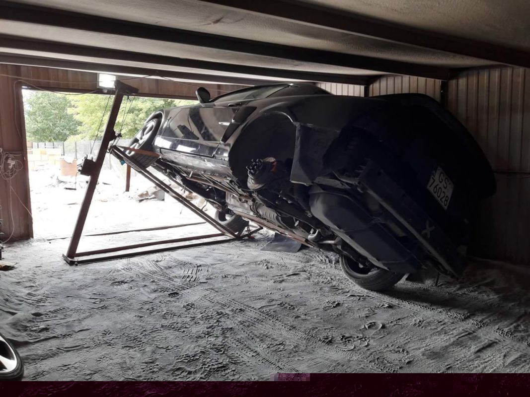 Miejsca podporu lewarka, z racji częstych zmian kół, zaczęły się trochę deformować. Pooglądałem trochę subframe connectors i oddałem Cobrę w dobre ręce na zrobienie zupełnie kastomowych usztywnień podwozia. Niejako przy okazji postanowiłem wysodować całe podwozie i zabezpieczyć je przed korozją.