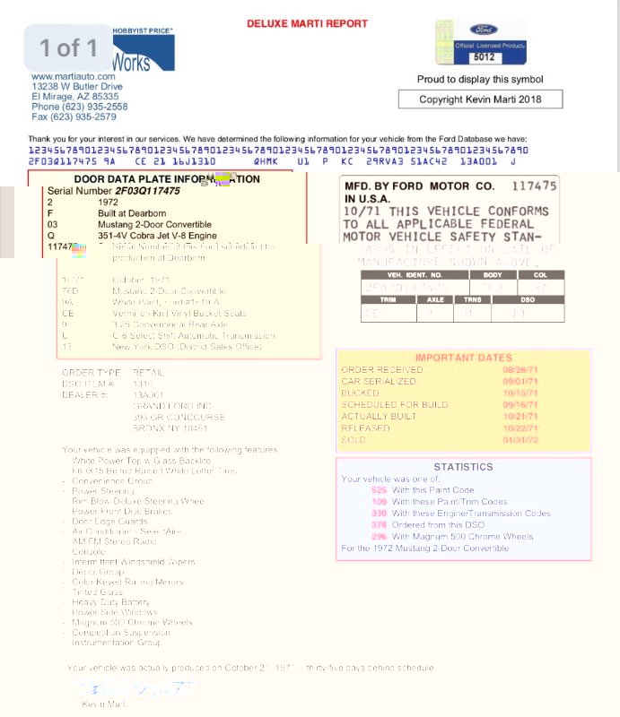 Jeszcze tego samego dnia trafiłem na Convertible z 1972 na szczęście z Marti Report, także miałem pełen wgląd jak „wyjątkowe” jest to auto.