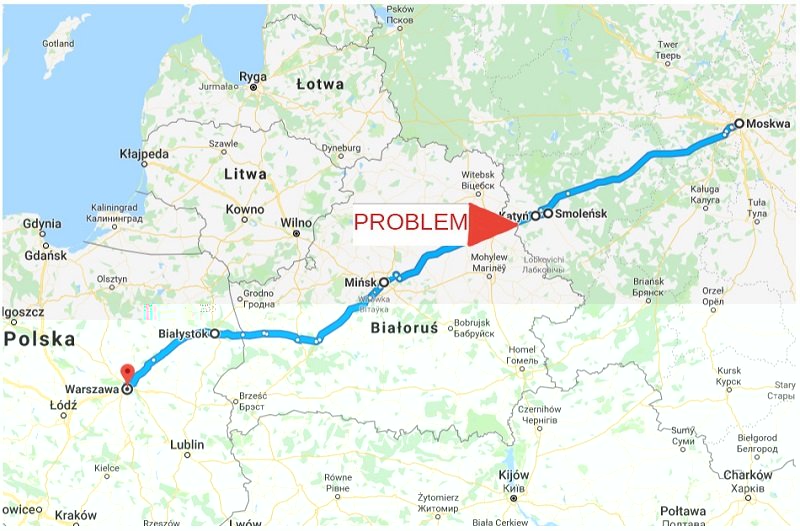 Moim zdaniem najbardziej optymalne wyjście w zaistniałej sytuacji to powrót z Moskwy M9 przez Łotwę i Litwę z noclegiem w Rzeżycy i potem przez Litwę do Polski.