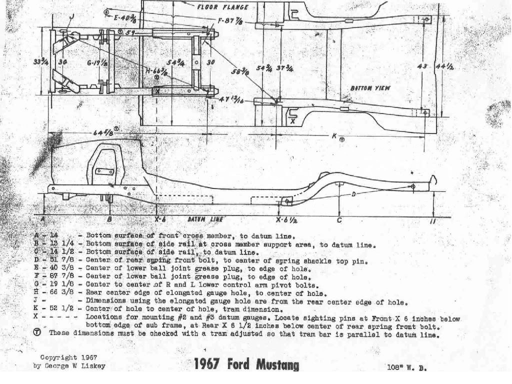 Teoretycznie powinieneś mierzyć ramę w określonych punktach - wrzuciłem Ci właśnie plik z wartościami. Niestety '67 nie jest mi super dobrze znany i nie weryfikowałem tych wartości, ale sądzę że w razie wątpliwości Koledzy pomogą.