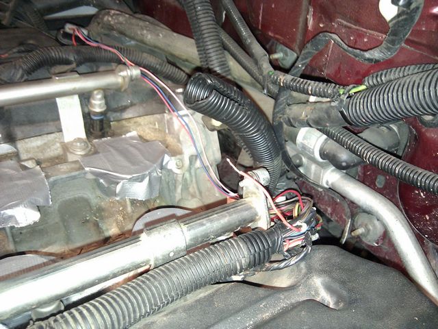 Kolejny etap zrobiony - nowe wtryskiwacze zainstalowane, linie paliwowe podniesione i rozszerzone. Gniazda wtryskiwaczy tak samo jak ciężko wylazły razem z wtryskami, tak samo ciężko się je wkładało ponownie - może dlatego, że nowe wkładałem. Trzeba było dobrać odpowiednią nasadkę i wbijać je z wyczuciem... Ciasno było między przodem lini paliwowej po stronie pasażera a jednym z przewodów gumowych od obudowy termostatu, ale jakoś się udało upchnąć...