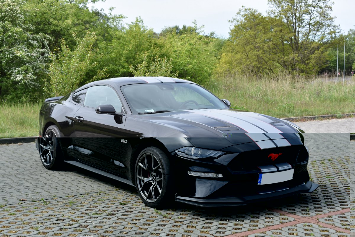 Sprzedam Ford Mustang GT 5.0 V8 Premium z bogatym pakietem, kolor czarny z pasami w kolorze szarym z czerwoną obwódką oraz wyjątkowym czerwonym symbolem Mustanga, auto jest z 2018r. sprowadzone z USA - jestem pierwszy właścicielem w Polsce, samochód prawie nowy z przebiegiem 3600km, posiada bogate wyposażenie:
