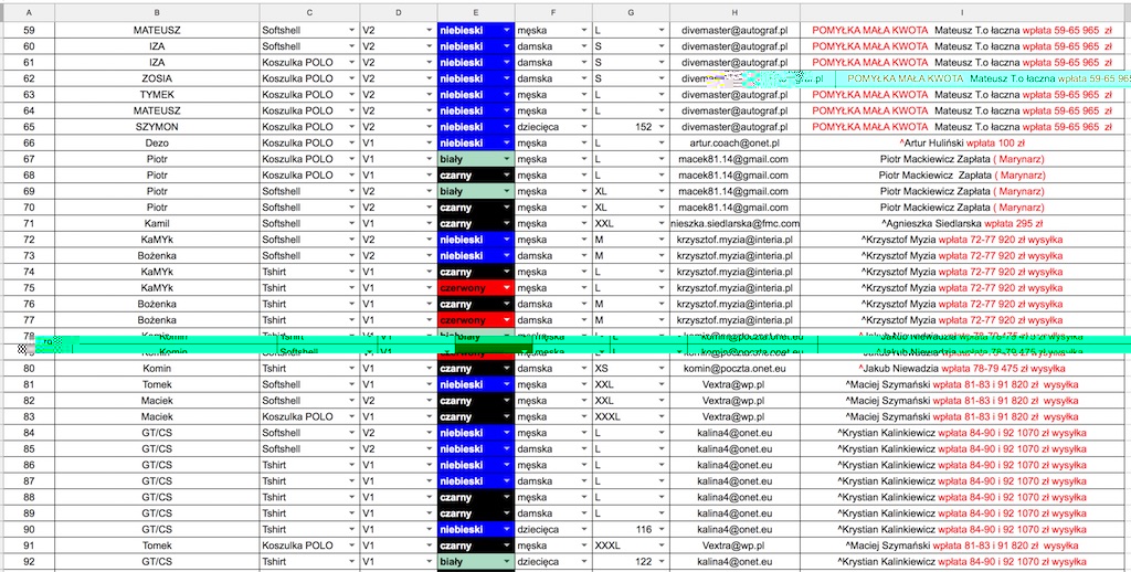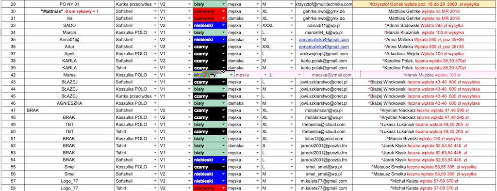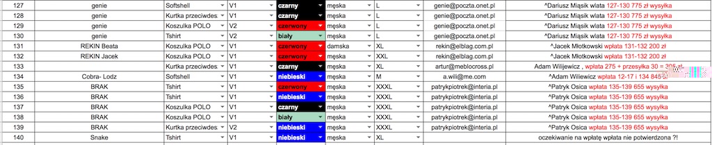Aktualna lista zamówień poniżej, ewentualne błędy nie będą podstawą do reklamację prosiłem pytałem i upominałem!