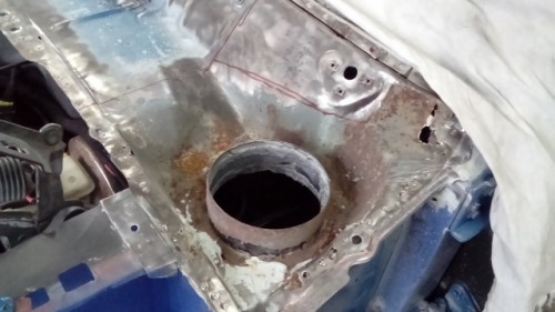 jest jeszcze jedna kwestia, jak prawidłowo naprawić cowl panel, otóż wszyscy mówią zrobić 178 dziur i wtedy wymieniać cały/ćwiartki, wstawić i zespawać, ale usłyszałem o innej metodzie, mniej inwazyjnej, szybszej, a jedynie może trudniejsze w spawaniu, otóż niektórzy wycinają w górnej części ćwiartki, bez rozwiercania całego cowl panelu, po wycięciu górnych ćwiartek dokonują napraw, a na koniec wstawiają górne ćwiartki i spawają na płasko - prostsze, szybsze.
