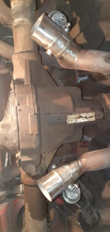 Dodatkowo wspawałem w seryjny tłumik dodatkowe rury(rura kwasoodporna, polerowana fi80) jako nowe końcówki wydechu. Z kolei przed mostem wspawałem przepustnice wydechu. Wybór padł na sterowanie pneumatyczne, ze względu na niższe koszty zakupu, koszt ok 180zł za szt. oraz trwałość. W porównaniu do elektronicznych, teoria zakłada, że nie ma się co popsuć.