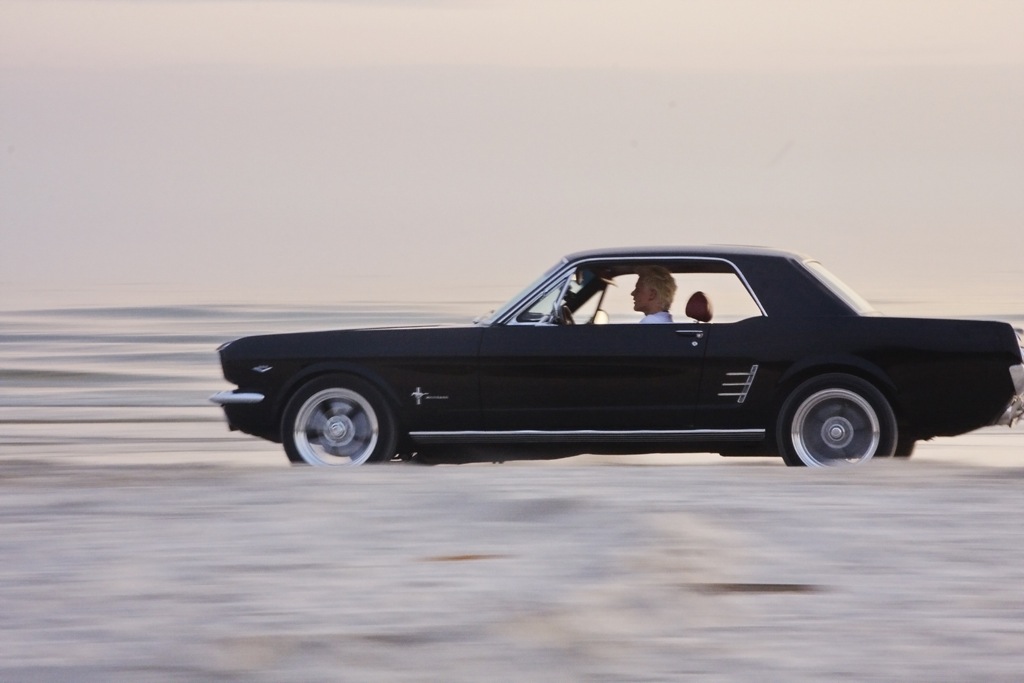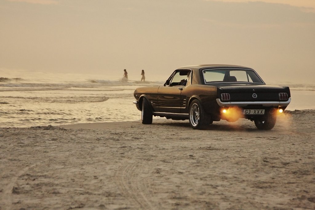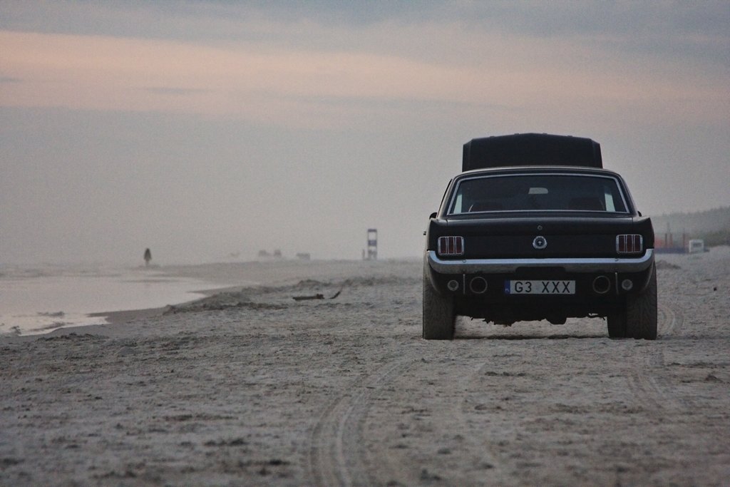 Piękny Mustang :D ,a zdjęcia na plaży jeszcze dodają mu uroku.