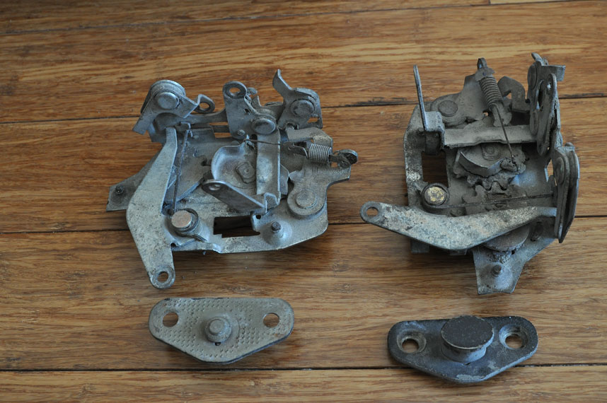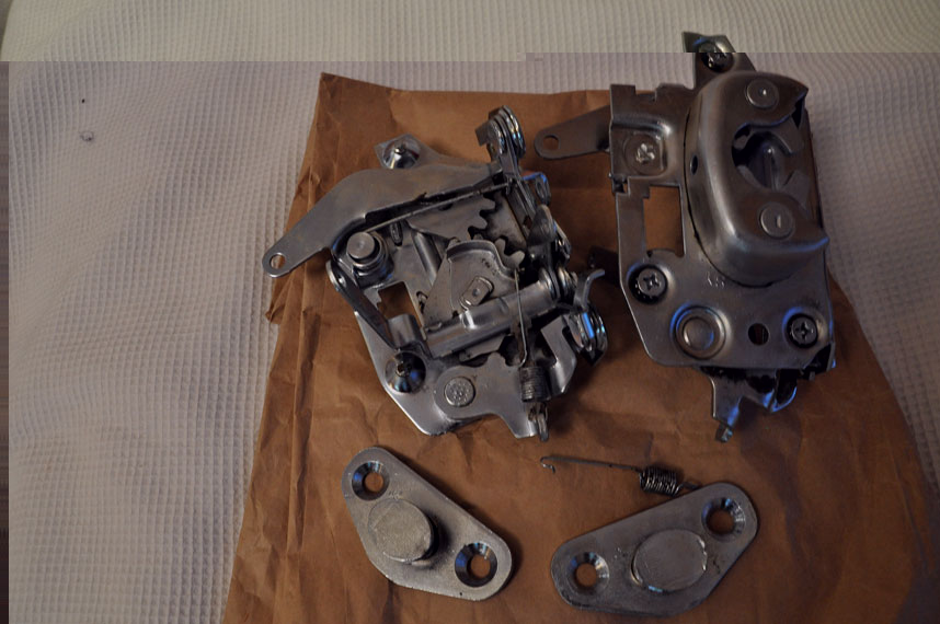2. Zamki również zostały "odświeżone", a co ciekawsze w czasie mycia acetonem z rygli została zmyta czarna farba, pod którą była żółta (że to niby żółty ocynk...) I tu miła niespodzianka - o ile wszystko kosztuje mnie w stówkach i tysiącach to widoczny ocynk był zrobiony za dosłowne dwa piwa