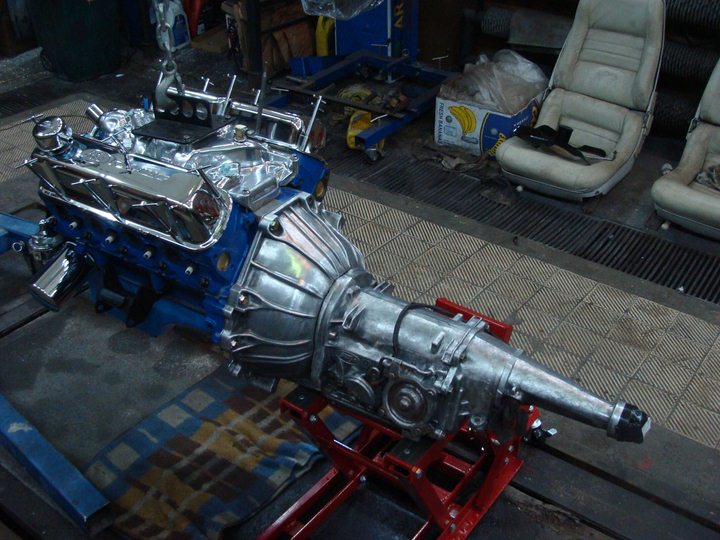 wewnetrzne czesci silnika-zestaw naprawczy firmy COMP Cams,zewnetrzne jak kolektor ssacy 4ro gardzielowy(oryginal byl 2gardzielowy)Edelbrock(Pavulon dobre oko;),gaznik 650CFM Edelbrock,manualne ssanie,pompa wody,pompa paliwa rowniez Edelbrock.